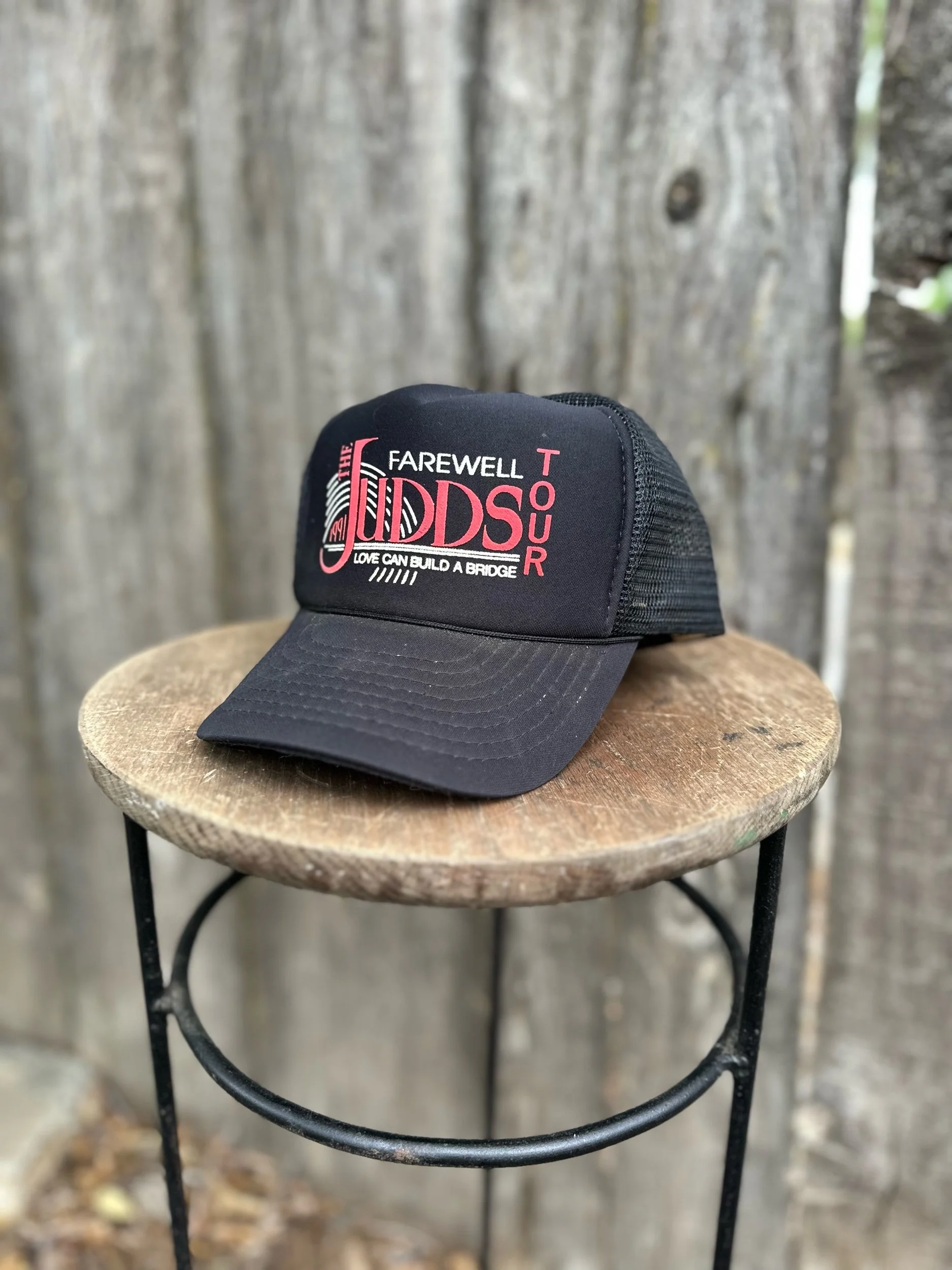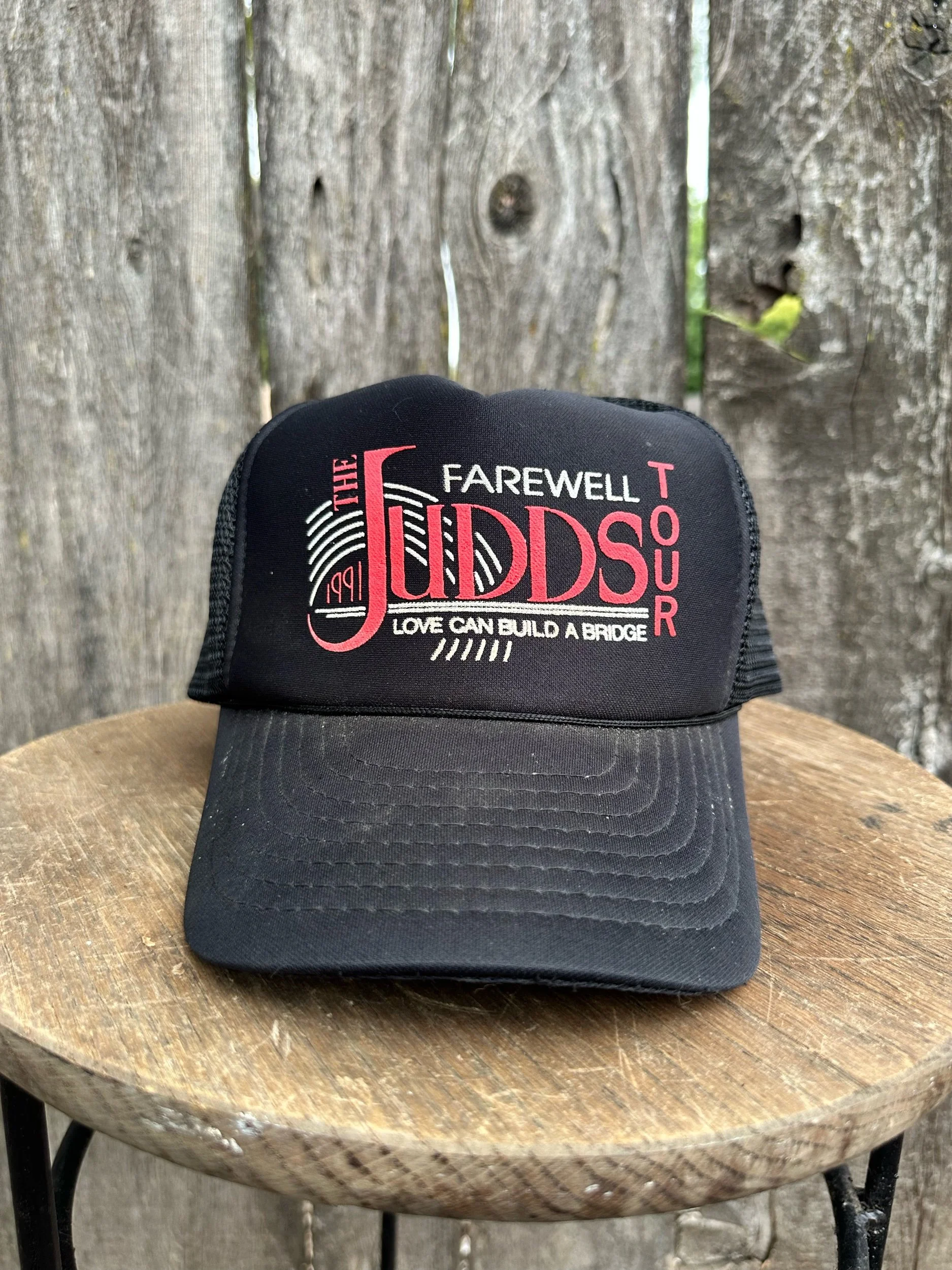 Image 1 of 5 Image 2 of 5 Image 3 of 5 Image 4 of 5 Image 5 of 5 The Judds Trucker Hat $42.00 Vintage Trucker Hat from the Judds Farewell tour Add To Cart Added! Vintage Trucker Hat from the Judds Farewell tour